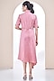 Featuring a pink shirt dress in premium cotton base with hand embroidery. It is paired with a belt. Pair with statement earrings and heels for an evening look.