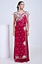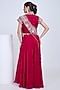 Featuring a pink sharara in silk and satin organza base. It is paired with an embroidered collared neckline blouse and an organza wrap-style drape. Accentuate it with polki jewellery and wedges for a mehendi evening, festive brunches, or an intimate wedding ceremony.