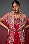 Red & Pink Ombre Georgette Embroidered Cape Set