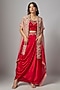 Red Silk & Satin Modal Embroidered Cowl Skirt Set