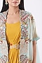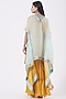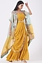 Featuring a yellow gown saree in georgette base. It is paired with a matching belt, a drape having zardosi work, and an organza embroidered cape.