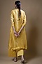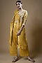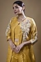 Featuring a yellow jacket in pure organza base with embroidery. It is paired with pants and a bustier.
