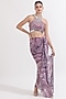 Dusky Lilac Georgette Handcrafted Draped Dhoti Skirt Set