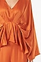 Featuring a burnt orange high low peplum top in satin silk base with cowl sleeves. It is paired with matching wide leg pants.