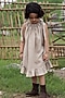 Featuring an abalone knee-length dress in linen base with a drawstring, frilled hemline, and kantha embroidery.