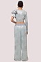 Featuring an aqua knotted top in georgette base with pearl embellishment and a ruffled sleeve. It is paired with matching floral printed and embellished palazzo pants.