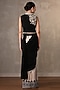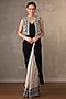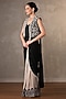 Featuring a beige and black skirt saree in georgette base with an attached pleated pallu, sequis and cutdana work. It is paired with a bustier and an embroidered jacket. Accentuate it with gold earrings and block heels for a festive occasion or sangeet ceremony.
