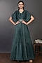 Featuring a bottle green flared gown in cotton base with pleats, butterfly sleeves, and cutdana work. It is paired with a matching embellished belt.