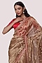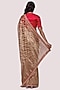 Featuring a bronze saree in handloom base with tikki, kasan and moti embellishment, including monochromatic geometric detailing. It is paired with a red embellished blouse. Accentuate with dangler earrings and heels for a festive occasion or wedding ceremony.