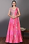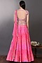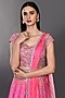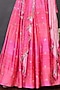 Featuring a candy pink lehenga in satin print base with floral mirror embroidery. It is paired with a matching blouse, dupatta, and a belt.
