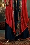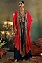 Featuring a cerise pink kaftan jacket in silk base with cutdana, sequins and mirror embellishments. It is paired with a sleeveless crop top having print and wide-legged pants. Accentuate this designer jacket set with dangler earrings and block heels for a complete look.