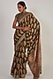 Featuring a dark green saree in handloom base with kasab and aari embellishments. It is paired with a matching blouse.