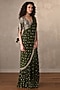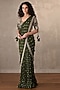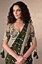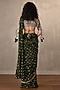 Dark Olive Chanderi Mirror Embroidered Draped Skirt Saree Set