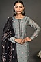 Featuring a deep sky grey straight kurta in chanderi base with cutdana motif embroidery. It is paired with contrasting pants and a dupatta.