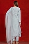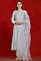 Featuring a doctor blue kurta in silk base with floral embroidery. It is paired with matching straight pants and a dupatta.
