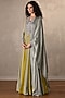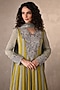 Dusky Blue & Lime Green Organza Embroidered Striped Anarkali Set
