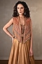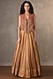 Featuring a gold lehenga in tissue base. It is paired with a blouse, including a short jacket having pearl, sequins and cutdana hand embellishments. Accentuate it with gold earrings and block heels for a wedding or sangeet ceremony.