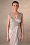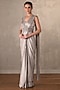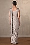 Featuring a grey pre-draped gown saree in satin base with hand embroidery. Style it with statement earrings, bold heels and a metallic clutch for a striking edge, Perfect for a cocktail, sangeet or engagement parties.
