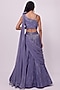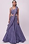 Featuring a lavender lehenga in crepe base with an attached dupatta and embellishment. It is paired with a matching blouse.