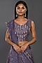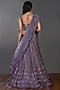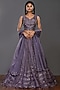 Featuring a lilac grey lehenga in organza base with tikki embroidery. It is paired with a matching blouse and a dupatta.