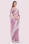 Featuring a lilac saree in organza base with embellishments. It is paired with a blouse having moti embellishments and latkans detail. Style it with statement earrings, bold heels and a metallic clutch for a striking edge, Perfect for a cocktail, sangeet or engagement parties.