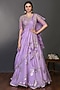Featuring a mauve lehenga in organza base with gold moti, stone, and cutdana embroidery. It is paired with a matching blouse and a dupatta.