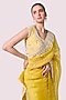 Featuring a mustard saree in organza base with embellishments. It is paired with a blouse having latkan details. Accentuate it with statement earrings and heels for festive occasions.