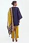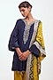 Featuring a navy blue kurta in chanderi base with tikki, cutdana, dabka, mirror and cheed embellishments. It is paired with contrasting pants and a dupatta.