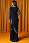 Featuring a navy blue draped saree in satin base with cutdana embroidery. It is paired with a matching jacket and a blouse.