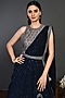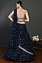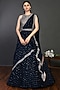 Featuring a navy blue lehenga in crepe base with mirror and stone embroidery. It is paired with a matching blouse and a belt.