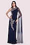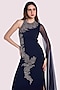 Featuring a navy blue-grey gown in georgette base with trail mono-long cape sleeve, cheed, cutdana, beads and sequin embellishment. Accentuate with statement jewellery and heels for a festive occasion, sangeet or engagement ceremony.