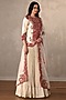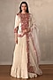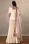 Featuring an off-white lehenga in organza crush base. It is paired with a front-open jacket having thread and mirror embellishments, including an embroidered scalloped dupatta. Style it with statement earrings, bold heels and a metallic clutch for a striking edge, Perfect for a wedding, sangeet or engagement parties.