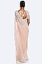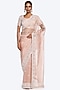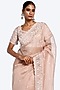 Featuring an old rose saree in organza base with moti embellishments. It is paired with a blouse having latkans detailing. Accentuate it with statement earrings and heels for a festive occasion.