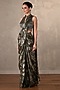Featuring an olive green draped saree in foil fabric base with abstract metallic detail. It is paired with a blouse having sequins and cutdana embellishment. Accentuate it with gold earrings and block heels for a festive occasion or sangeet ceremony.