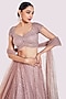 Featuring an onion pink lehenga in net base with embellishments. It is paired with a blouse a back cut-out, cap sleeves and cutdana embellishments and a dupatta. Style it with statement earrings, bold heels and a metallic clutch for a striking edge, Perfect for a wedding, sangeet or engagement parties.