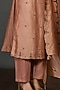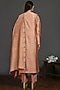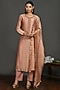 Featuring a peach A-line kurta in chanderi base with multi-colored resham machine embroidery. It is paired with matching pants and a dupatta