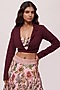 Featuring a pink crop top in satin base with floral print and an attached wine jacket. It is paired with a matching skirt having floral print, cutdana, and pearl work.