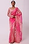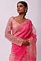 Featuring a pink and peach dual toned saree in organza base with scalloped edges, tikki and cutdana work embellishment. It is paired with a matching embellished blouse.