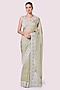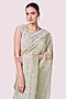 Featuring a pista green saree in organza base with embellishments. It is paired with a blouse having latkan details. Accentuate it with statement earrings and heels for festive occasions.