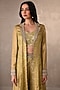 Featuring a pista green jacket in tissue and banarasi base. It is paired with a bustier and pants. Accentuate it with kundan polki earrings and heels for festive occasions or sangeet ceremony.