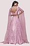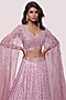 Featuring a primrose lehenga in lycra base with mirror, pearl and sequins embellishments. It is paired with a blouse having cae sleeves and pearl work. Accentuate with dangler earrings and heels for an engagement or a wedding ceremony.