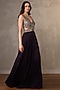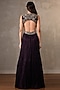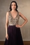 Featuring a purple gown in satin chiffon base with sequins, mirror and thread hand embroidery, including a deep V-neckline. Accentuate it with dangler earrings and block heels for cocktail nights or evening soirees.