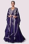 Featuring a purple cape in silk base with cheed work, mirror, dabka and sequins embellishments. It is paired with an embellished sleeveless blouse, a lehenga with an attached dupatta and a belt. Accentuate it with statement earrings and heels for a festive occasion, wedding or engagement ceremony.