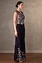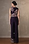 Featuring a purple waistcoat in silk base with print, pearl, sequins and cutdana work. It is paired with wide-legged printed pants. Accentuate it with pearl earrings and block heels for a festive look.