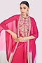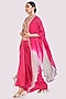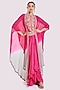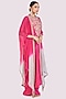 Featuring a rani and grey cape in georgette and silk base with sequins and cutdana embellishments. It is paired with a sleeveless blouse and pants. Accentuate it with zircon earrings and heels for festive occasions or sangeet ceremony.