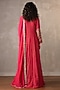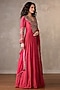 Featuring a rani pink anarkali in organza tissue crush base with a v-neckline, applique sequins, cutdana, dabka and pearl embellishments. It is paired with an embroidered dupatta. Accentuate it with polki earrings and block heels for a festive occasion or sangeet ceremony.