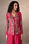 Featuring a rani pink jacket in silk base with embellishments. It is paired with a bustier and embellished pants. Accentuate it with kundan polki earrings and heels for festive occasions or sangeet ceremony.