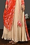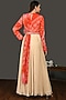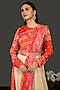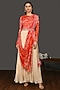 Featuring a red and beige dress in georgette base with bullion and mirror embroidery. It is paired with a matching belt and a drape.