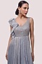 Featuring a sky blue jumpsuit in organza base with sequins and cutdana embellishment, including ruffle detailing.