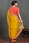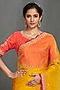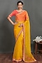 Featuring a yelloe saree in organza base with gota and cutdana embroidery. It is paired with a contrasting blouse.